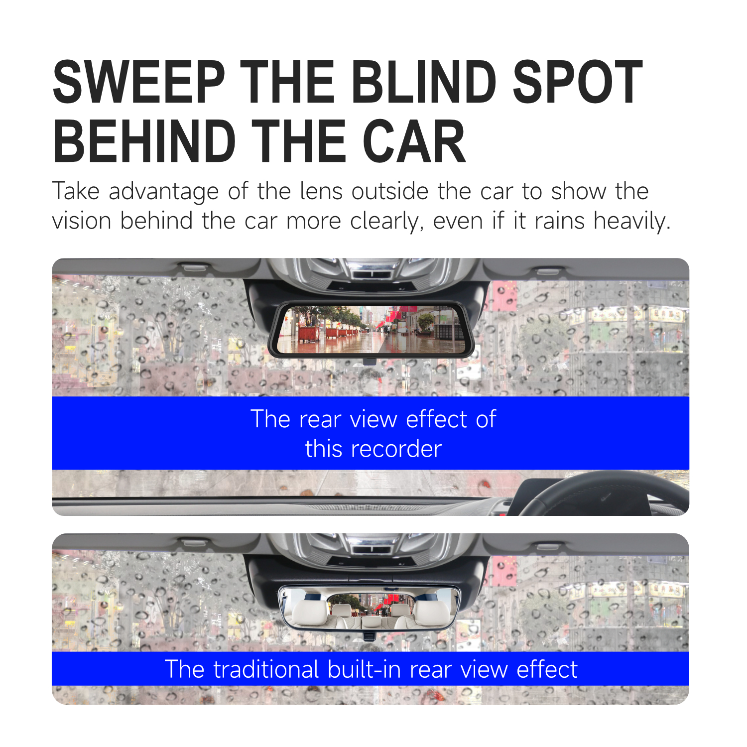Equipped with a 9.66-inch IPS full touch display (1920×1080), the R30S transforms your standard rear view mirror into a high-definition smart mirror, delivering wide-angle visuals in real time. The front P2 HDR camera and rear AHD GC2083 camera (6m cable) are designed to handle all lighting conditions, from bright daylight to nighttime drives.